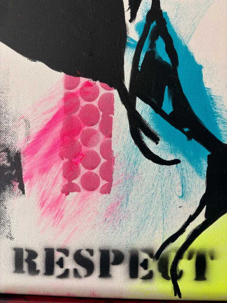 Entre street art et portrait moderne, cette pièce dégage une puissance graphique qui attire le regard de loin, mais se savoure aussi dans ses détails et ses textures. Une invitation à conjuguer style et valeurs, dans un langage visuel universel.